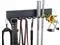 MULTI-PURPOSE GYM ORGANIZER-23inch Lx 5 inch Wx 2 inch H, 5 inch Long and Strong 11 prongs make it great resistance band holders, Jump Rope Holders, Workout Belts, form roller and yoga mat Storage. 60°angled lip on the end to prevent your gym equipment from falling