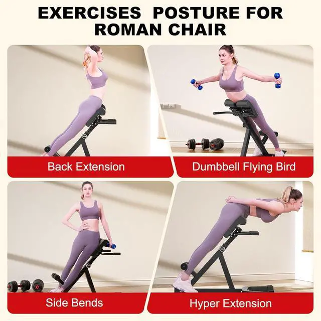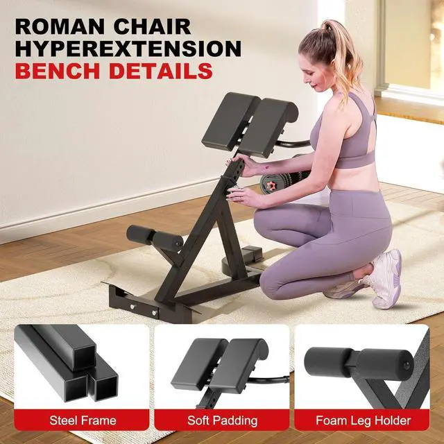 Comfortable Workout: Roman chair is equipped with wide seat cushion, handles and two up and down foam leg holders. The soft padding allows to avoid you from hard objects during exercise