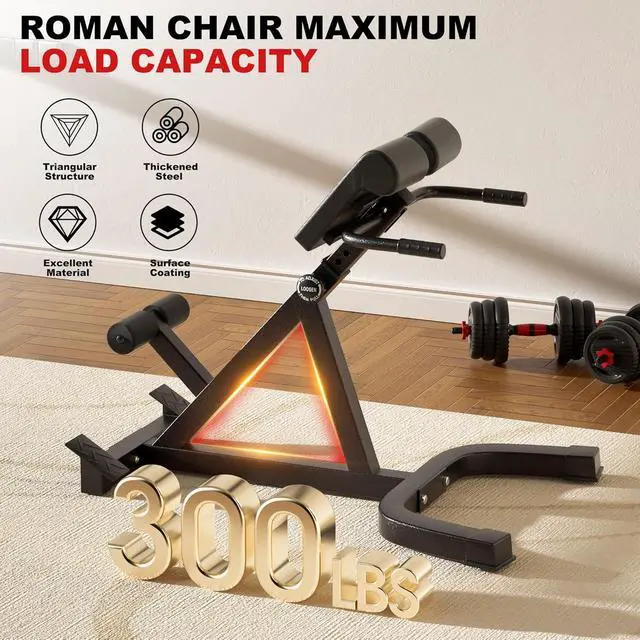 Excellent Quality & Stability: Roman chair upgrade and thicken material to ensure that your training process can be used safely and stably. Designed with a unique frame with a stable structure. The maximum weight capacity of roman bench is 300 pounds