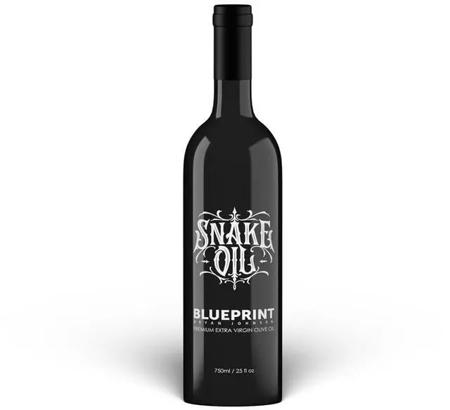 Blueprint Bryan Johnson Olive Oil Snake Oil- High Polyphenol Extra Virgin Olive Oil (400+ mg/kg) Cold Pressed, Early Harvest, First Cold Press EVOO Keto, Paleo, Non-GMO 750ml Glass Bottle