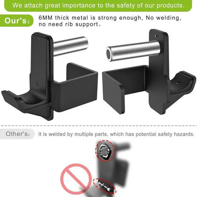 Upgrade Your Power Rack: Enhance your strength training experience with these bottom reinforced J-hooks from Kipika Fit. These hooks are designed to fit 3" x3" steel tube power racks with 5/8" or 1" hole, so you dont need to buy two different sizes to fit your equipment. Please measure your power rack size before buying