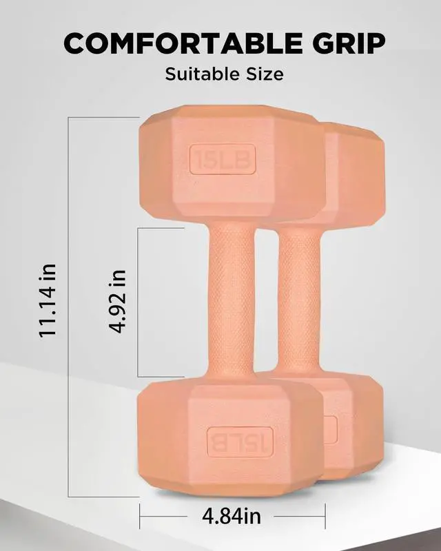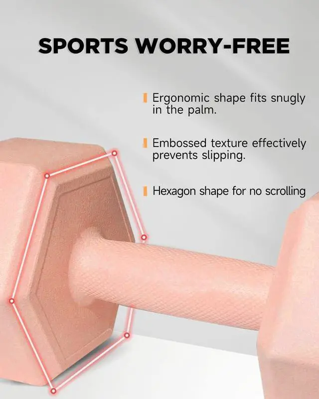 [NO SCROLLING] Our dumbbells feature a hexagonal design with a textured PVC surface so you don' t have to worry about rolling while stacking and doing floor moves.