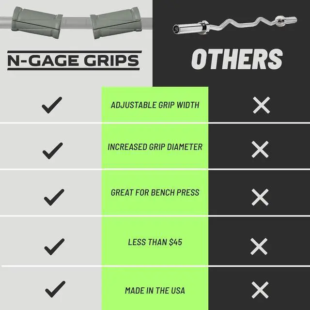 Unlock New Strength Gains: The thicker diameter of N-Gage Grips forces greater muscle engagement through your forearms, hands, and throughout your upper body; experience faster grip strength gains, deeper contractions, and bigger arms
