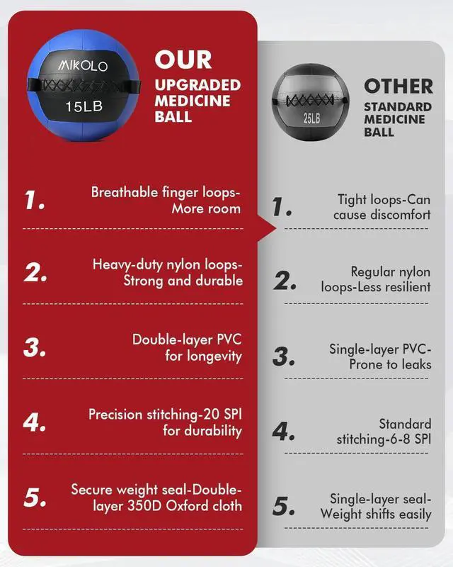 ALL-IN-ONE WORKOUT VERSATILITYWhether youre targeting functional training for sports like golf and boxing, engaging in cross-training, wall ball slams, toss exercises, or conditioning routines, the MIKOLO Medicine Ball set is a cost-effective solution for your gym, home, or outdoor space. Its safe for beginners, effective for athletes, and gentle enough for recovery routines.