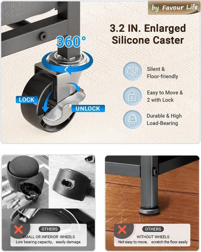 Workout Cart with Lockable Casters Equipped with four 3.2 -inch heavy-duty wheels (2 lockable), this workout cart for home gym moves smoothly even under heavy loads. Each caster supports up to 110 lbs, allowing the rack to function as a stable weight cart, workout organizer, or mobile gym equipment organizer without wobbling or noise.
