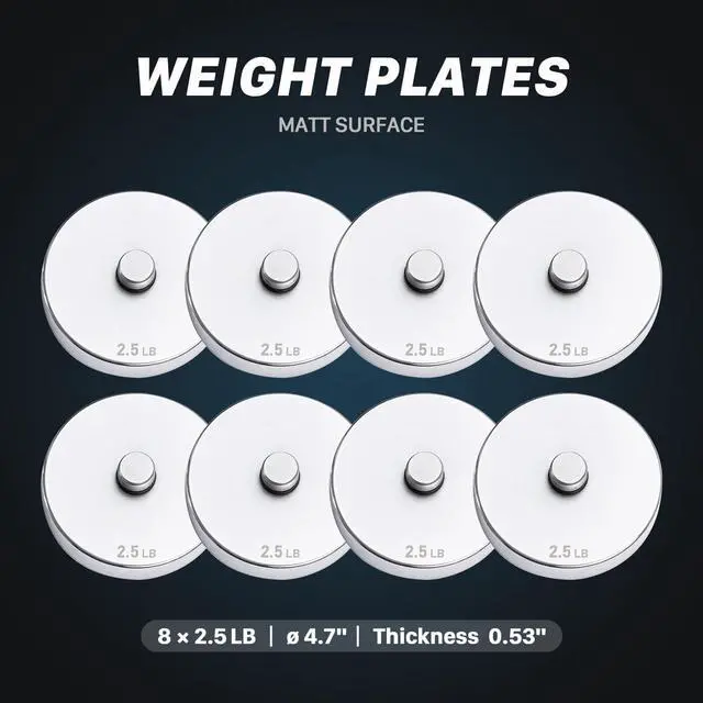PACKAGE CONTENTS: 8 pieces of 2.5 lb weight plates.