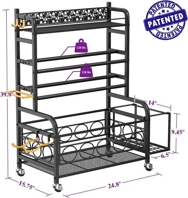 Large Home Gym Storage Rack: This multi-functional weight rack is equipped with top metal layer for kettlebells, 2-layer dumbbell rack, bottom metal storage basket, a side basket for yoga mat and foam rollers, Several side hooks for fitness bands and rollers. Perfect for organizing your various gym equipment into one storage rack, easy to organize your space and stay organized