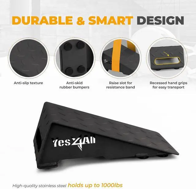 HEAVY DUTY DESIGN: Our wedge blocks for squatting are made of stainless steel, with a reinforced joint weld and a baffle beneath the product to support up to 1000 pounds; The foot wedge is suitable for different types of training due to its high load