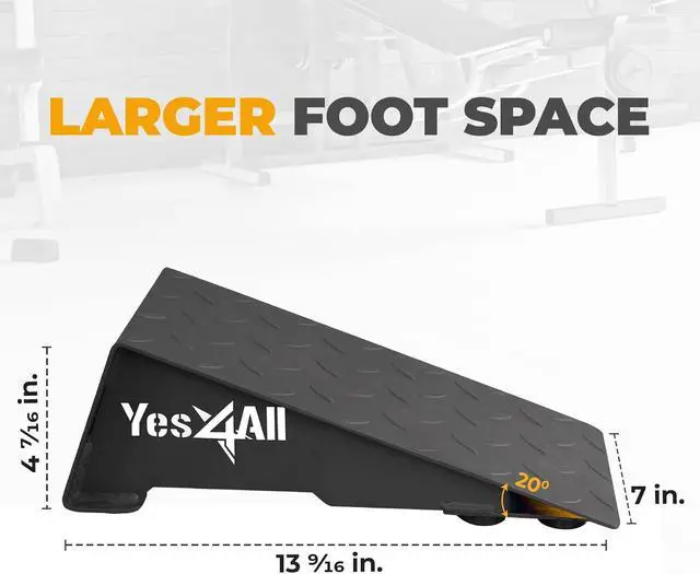 LARGER FOOT SPACE: Our squat wedge for weight lifting with surface sizes up to 13 9/16 x 7 inches is suitable for most adult foot sizes and offers more comfort and provides more foot space
