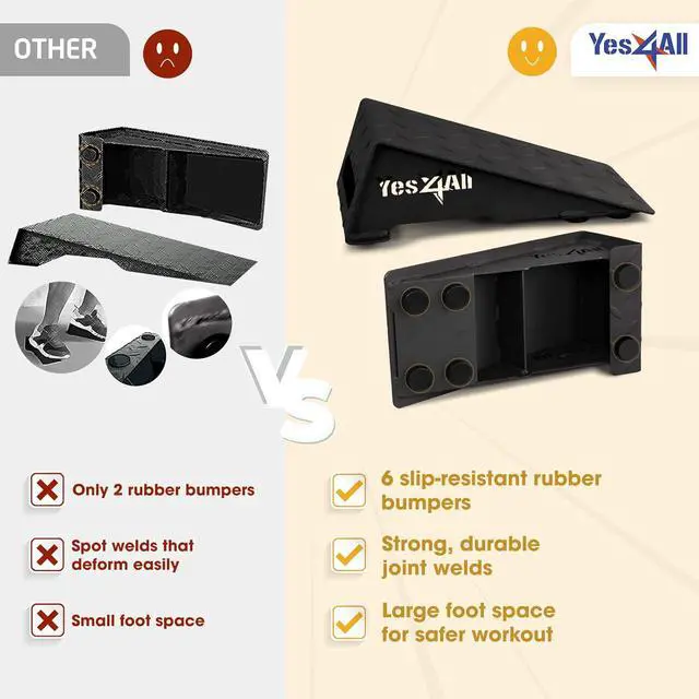 UPDATED WITH SIX RUBBER BUMPERS: Besides a non slip surface texture, our squat wedge has been upgraded with six anti-slip rubber bumpers on the bottom; Preventing slipping and reducing unintended injuries, especially in the heel and back