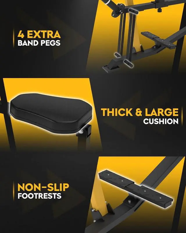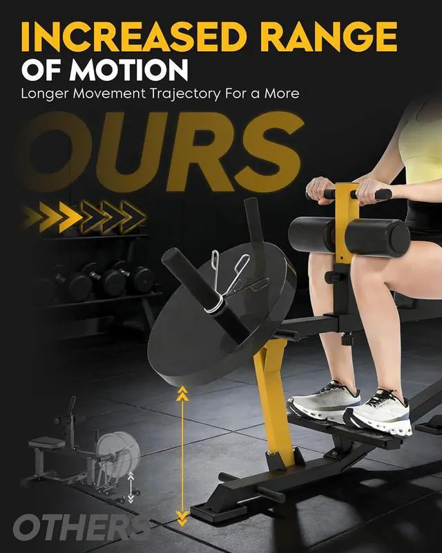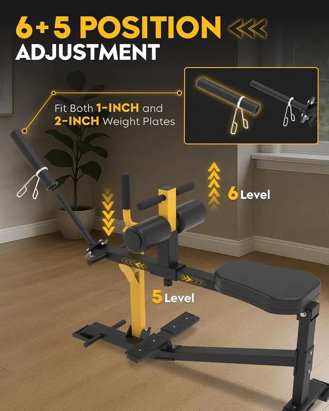6+5 ADJUSTABLE SETTINGS: Leg raise machine with 6 height and 5 positions adjustable for fore and aft distance., it accommodates a variety of training needs. The thigh supports and cushioned seat offer a comfortable, ergonomic workout, ensuring everyone can find their ideal training position. Fits users up to 6 feet tall.