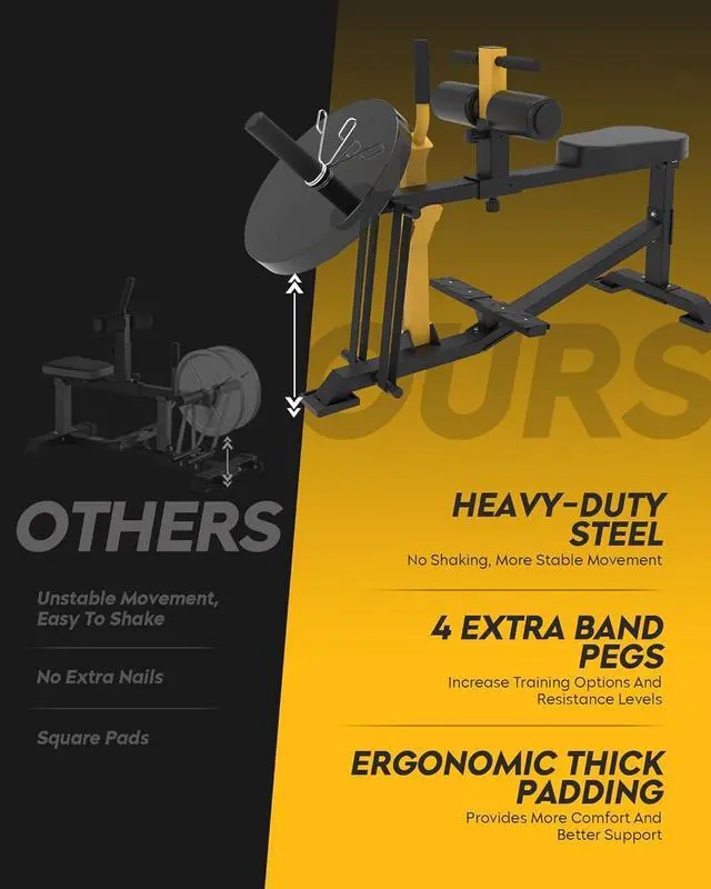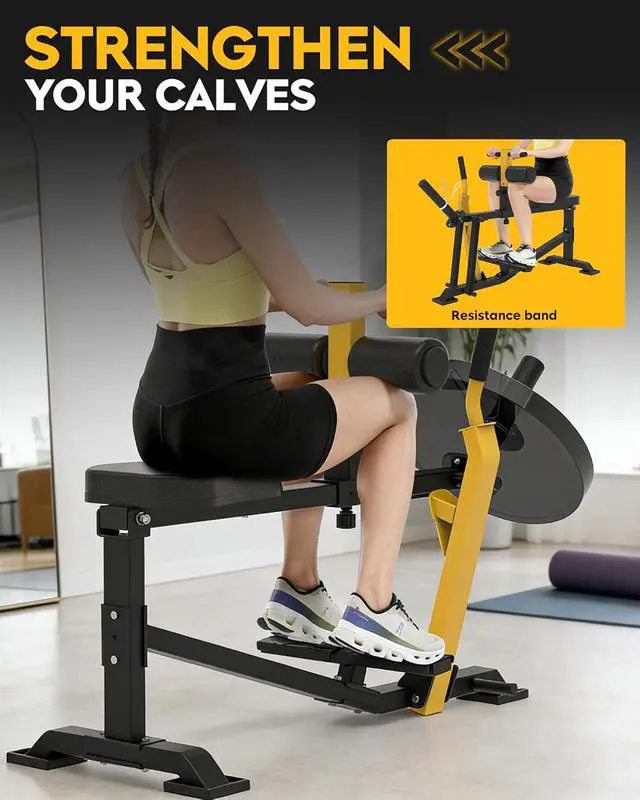 DIVERSE TRAINING OPTIONS: Seated Calf Raise Machine is designed for workouts with barbell plates and can also have resistance bands attached to its side hooks to increase the intensity of the training and effectively sculpt the leg muscles. It can also be used with elastic bands alone for calf stretching. ( YOUR PACKAGE INCLUDES ELASTIC BANDS AND BARBELL CLAMPS)