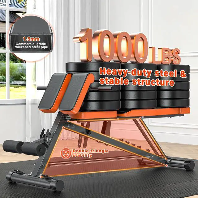 Sturdy and StableBuilt with commercial-grade thickened steel and a double-triangle frame, this workout bench supports up to 1000 lbs for maximum stability and durability, perfect for serious home training