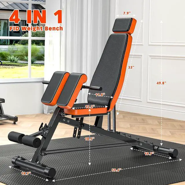 Multi-Functional FID BenchUse as a Roman Chair, Hyperextension Bench, Sit Up Bench, and Weight Bench for back, core, glutes, and hamstrings
