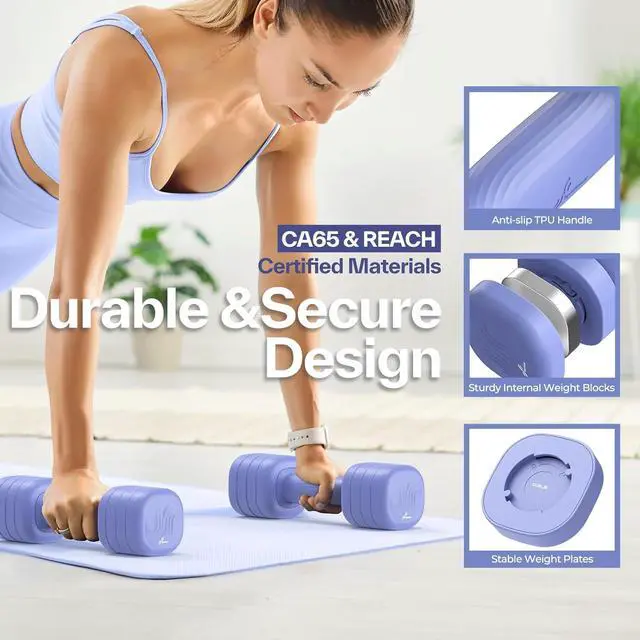 TPU Soft Rubber Handles: The handles are made of TPU soft rubber, ensuring a secure grip even during sweaty workouts. This non-slip, sweat-resistant design enhances your overall exercise experiences. To make more durable, the shell of these adjustable weights is made of tough ABS materials