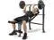 FREE-WEIGHT SET: This innovative equipment includes a complete weight set: a standard-size weight bar, two 25 lbs weight plates, two 15 lbs plates, two 10 lbs plates, and two clips. Each plate is vinyl-coated to prevent damage to the floor.