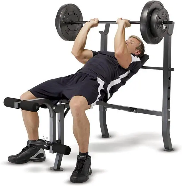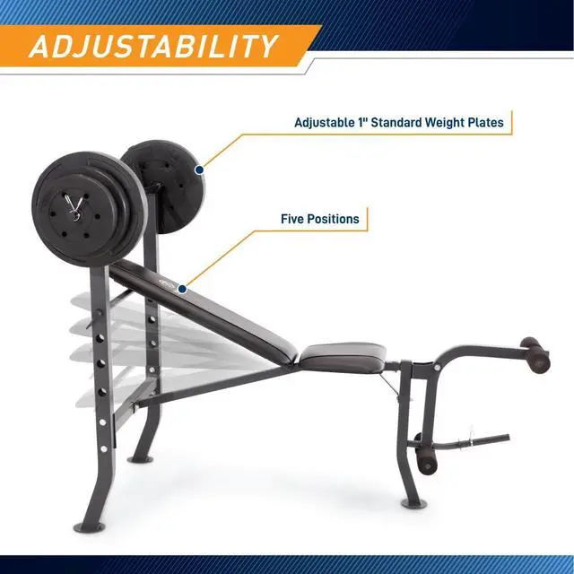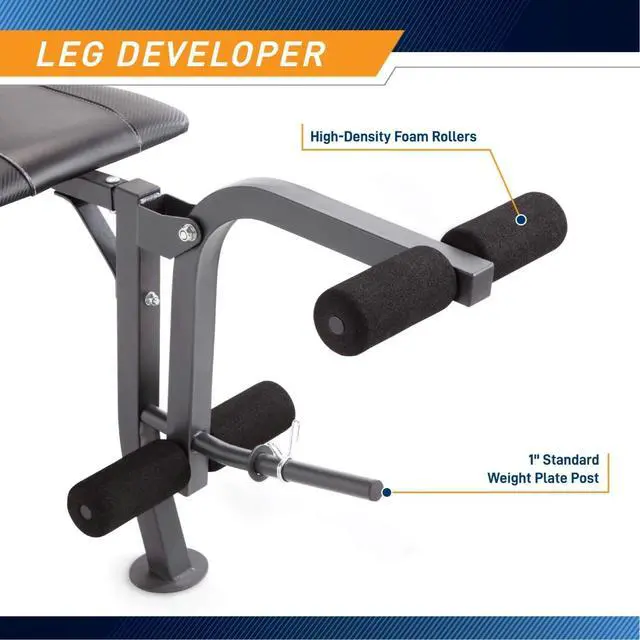 PREMIUM STEEL CONSTRUCTION: Made of heavy-duty steel tubing reinforced with powder coating, this benchs structure wont collapse under your weight. Its stabilized design, foam-roller pads, back pad, and rolled upholstery provide optimum support.
