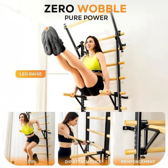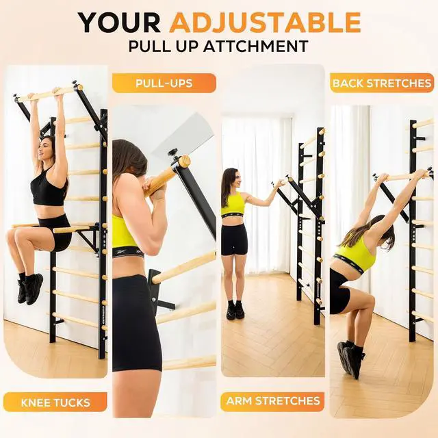 Adults Train All At Once: The Swedish ladder is your all-in-one solution for calisthenics, gymnastics, ballet barre, suspension training, pull-ups, dips (optional attachments! ), leg raises, core work, stretching, climbing, and physical therapy.