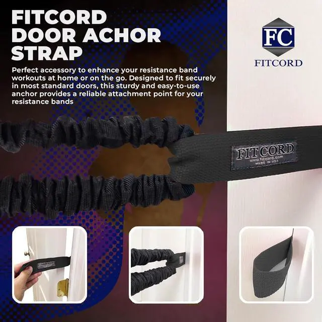 SAFE AND SECURE: With a strong nylon strap and an easy installation process, the included door anchor enhances the versatility of your workout. Simply slide it into any door hinge, and it' s ready to go. Expand your exercise routine with confidence, knowing your resistance bands are securely anchored, allowing you to focus on achieving your fitness goals.