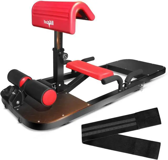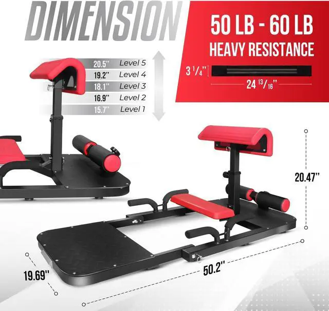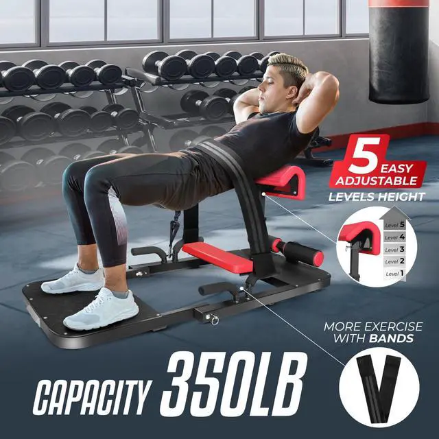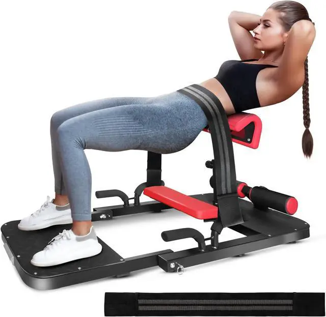 MULTIFUNCTION & EFFECTIVE WORKOUTS: Sissy squat machine home offers 5 adjustable height levels, easy to find comfortable position; Comes with two 60 lbs resistance bands and padded covers to enhance workout intensity; Unlock various exercises such as Bulgarian split squats, back extensions, hip thrusts, and sissy squats