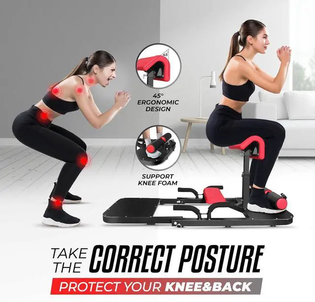STURDY & HIGH CAPACITY: Our stable Metal Squat Machine boasts load capacity of 350 lbs, made with durable steel frame and equipped with non-slip foot pads; Its solid construction ensures handles intense workouts for experiencing stretching, sissy squats and hip thrust with confidence
