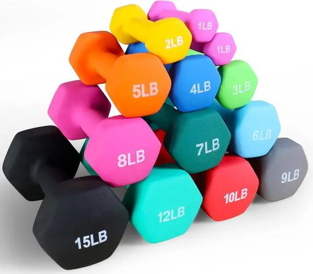 Hexagon shaped dumbbell heads are designed to prevent rolling and provide easier storage