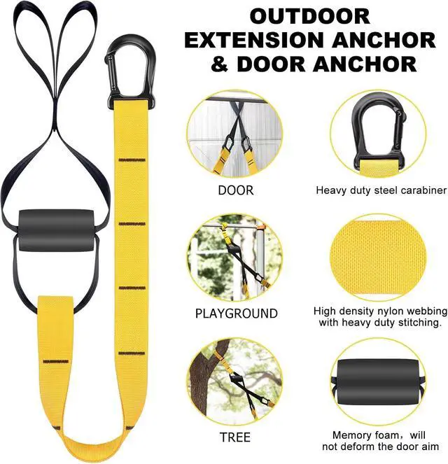 [Mobile Gym] - All-in-one full body strength resistance training kit with door anchor and adjustable extension strap. suitable for horizontal bars, walls, doors, solid beams, weight racks, heavy duty bag racks, railings, trees, fences or any solid object.