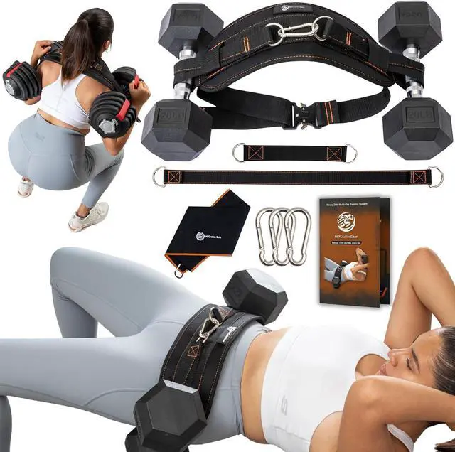 More Than a Hip Thrust Belt: This complete system also converts into a belt for squats, a weighted dip, or a pull-up belt. Its a versatile tool for your entire routine, from serving as a hip thrust belt for dumbbells heavy to weighted calisthenics, making it a true home gym essential.