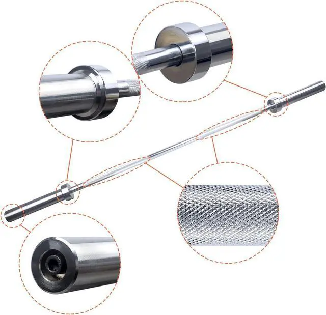 Knurling Handles: This Olympic barbell has grip shaft with medium double knurling increases friction and improves the grip experience fit for bench, squat, and deadlift. The knurling design can also effectively reduce the tension in the wrist and forearm, increase the safety of sports and ensure comfort.