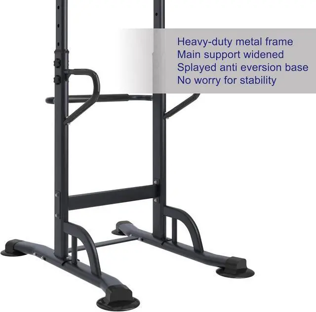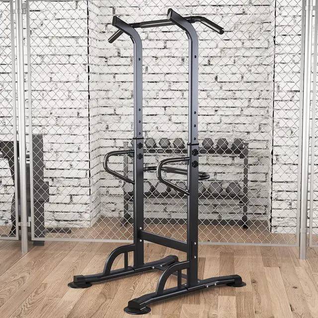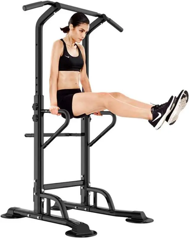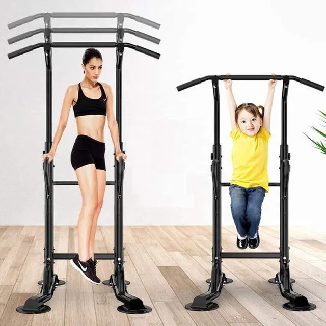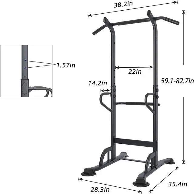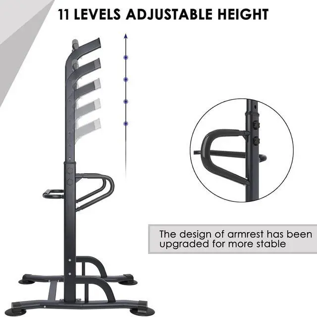 Height Adjustment: The power tower has 11 levels of height adjustment, ranging from 59.1 " to 82.7 ". It is suitable for the whole family' s workout needs, with the lowest level designed for children. This feature makes it convenient for people of different ages, shapes, and sizes.