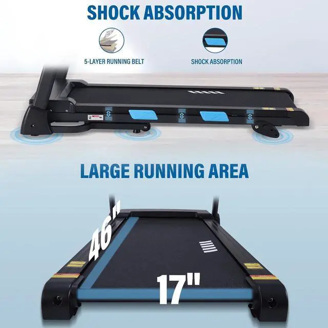 17IN Wide Belt & Shock AbsorbingATEEDGE Treadmills for Home features a spacious 17" x 46" running belt. Its advanced shock-absorbing design increases stability and minimizes impact on your joints for a safer, more comfortable workout