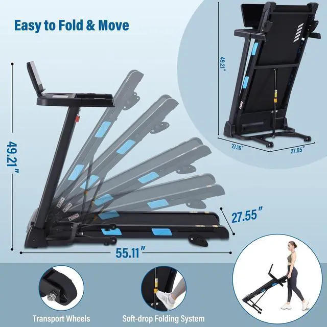 3.0HP Powerful MotorUpgraded 3.0HP motor with a 10 MPH capability ensures powerful, efficient workouts with noise levels below 50dB for quiet operation