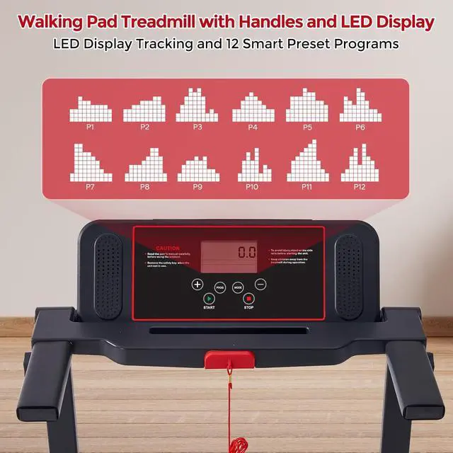 12 Preset Workout ProgramsThis walking pad treadmill has 12 preset programs, each with 10 automatic speed stages ranging from 0.610. 0 MPH. Choose steady walks, challenging jogs or mixed-pace cardiono manual adjustments needed, just focus on your workout and goals