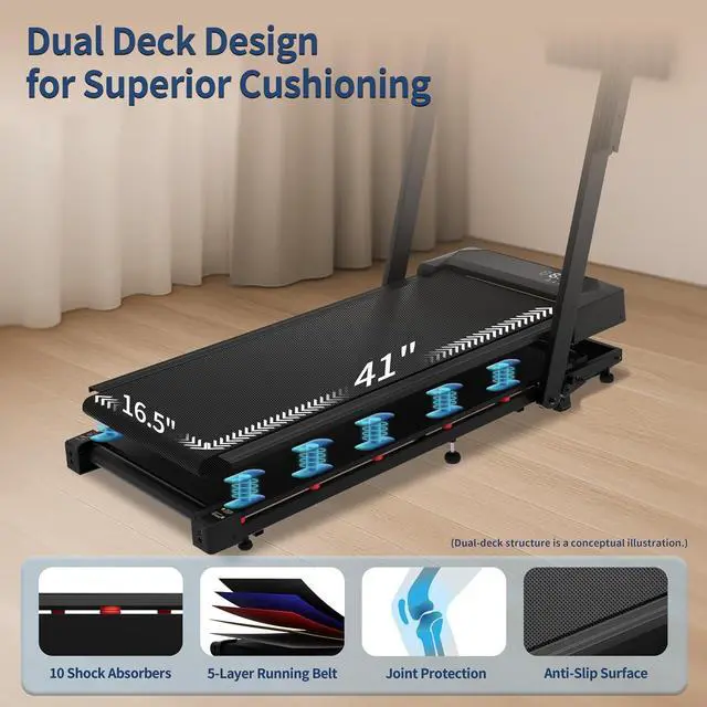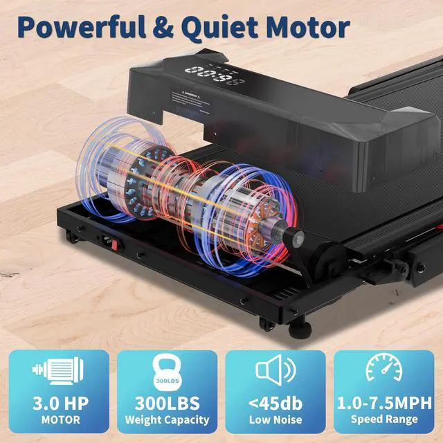 [ 3.0HP Powerful Motor] Built for smooth, reliable use, this walking treadmill is equipped with a 3.0HP motor that delivers stable power while keeping noise under 45dBwell suited for treadmills for home. Speeds range from 1.0 to 7.5 mph, supporting gentle walks to faster workouts, and its solid frame accommodates users up to 300 lbs. Enjoy quiet, consistent performance for everyday fitness.