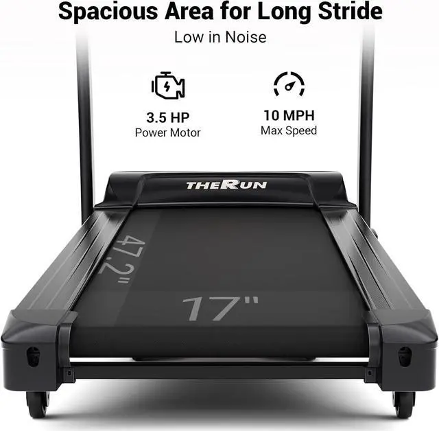 Widened Running Area: The 47.2 " length running surface gives your legs plenty of room to stride without worrying about falling off the back of the tread. The 17" wide belt offers plenty of leg and elbow space as you run. The 5 layer gently texture belt for durability, also gives you plenty of traction for running fast and up a steep incline