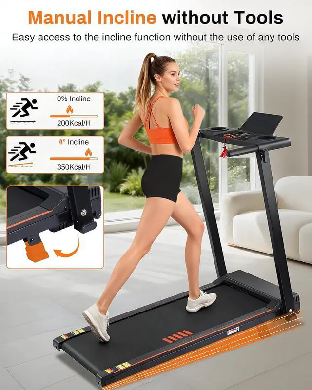 Manual Incline Treadmill: Elevate your home workouts with a dedicated manual incline setting. This single-level incline feature adds intensity to your routine, helping you burn more calories and engage different muscle groups. Perfect for boosting exercise efficiency without complex adjustments on your walking pad treadmill.