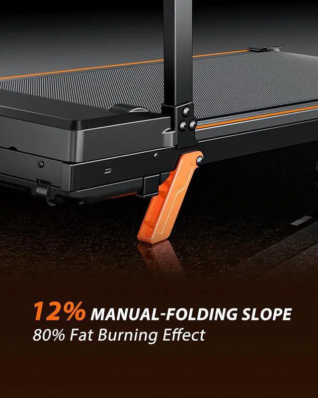 ***Upgrade 3 - Incline from 10% to 12%*** EVKRUN walking treadmill features a manual-fold front foot (one-click folding/unfolding). When unfolded, the 12% slope can burn up to 60% more calories, engage more muscles, and increase your heart rate. Experience the thrill of incline climbing and feel the burn in your home or office