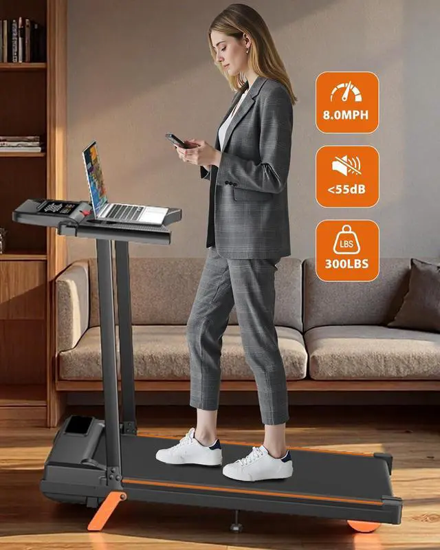 ***6-IN-1 Treadmill for Home***This incline treadmill is equipped with a powerful 3.0 horsepower peak motor, a speed range of 0.6 - 8.0 mph, and a weight capacity of 300-350 lbs. You can customize the speed/incline/desktop to suit your needs, whether it' s a working-low speed, a regular medium speed, or a challenging high speed