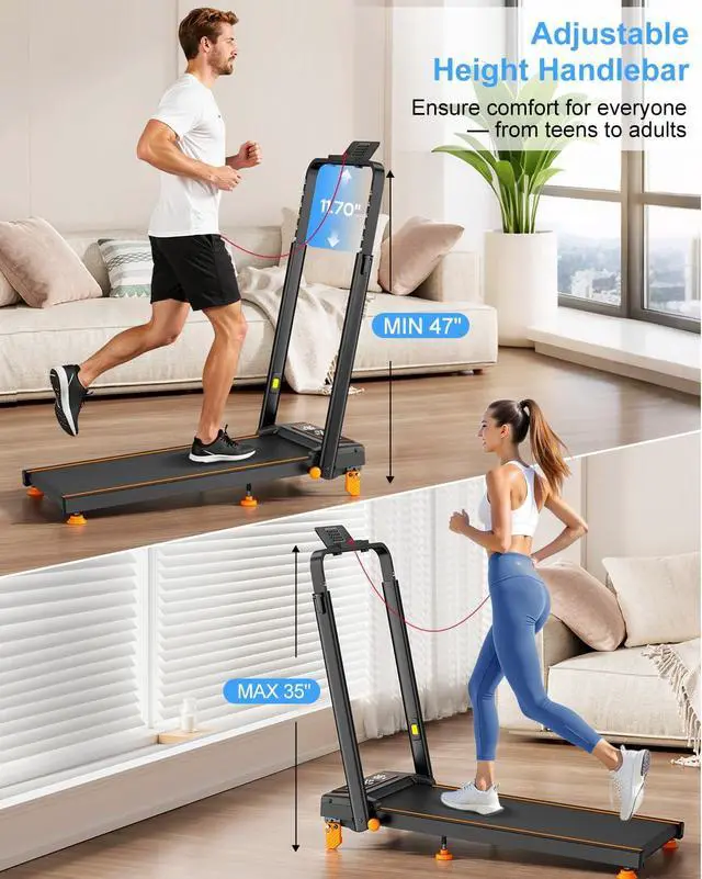 4-In-1 Walking Pad TreadmillStay active all day with this 4-in-1 walking pad with handle bar, combining a walking pad, under desk treadmill, folding treadmill and hill climber into one. Use it under a desk when handle bar folded ( 0.62. 5 MPH), raise the handle bar for jogging ( 2.54. 0 MPH) or running ( 4.06. 0 MPH). Replacing traditional treadmills, it offers freedom from exercise restrictions and allows you to exercise anytimerain, winter, or bad weather. Perfect for home, office, or gym.