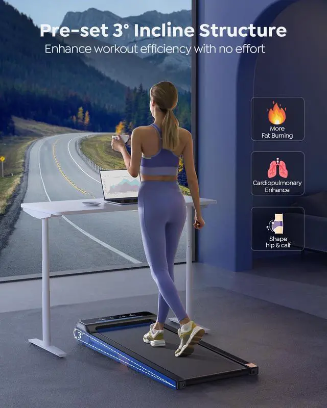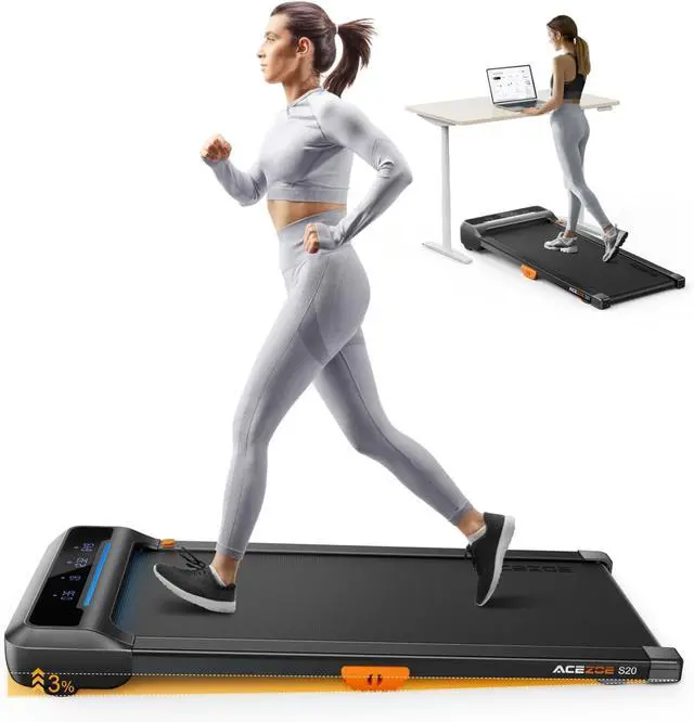 Worry-free WarrantyThe under desk treadmill combines sturdy build quality with exquisite appearance, complete with firm steel frames, masonry-textured non-slip running belts and dynamic ambient lights. Base in US, Acezoe promise to offer convenient after-sales service. Please feel free to contact us through user manual information, we' ll provide you a satisfactory solution. (Treadmill