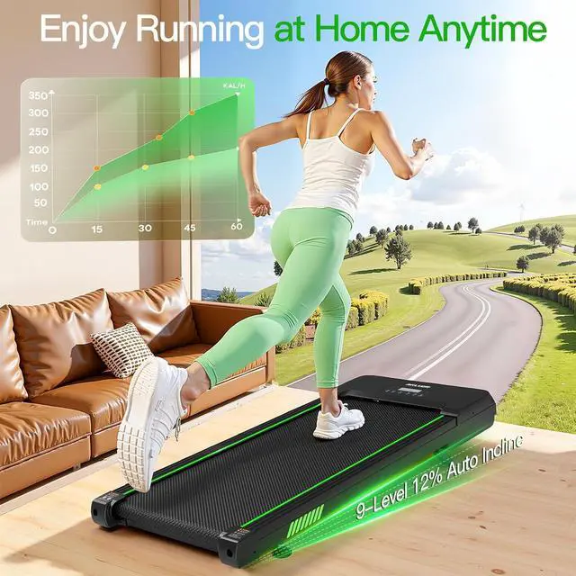 9-Level 12% Auto Incline Walking Pad for HomeThe walking pad treadmill with true auto incline technology. Unlike ordinary walking pads, this treadmill features a powerful incline system with selectable 0-9-level adjustment, offering a slope of up to 12%. With the touch of a button, instantly increase your intensity to burn calories up to 3x more efficiently and maximize fat burn. Rain or shine, transform your home into a personal hiking trail