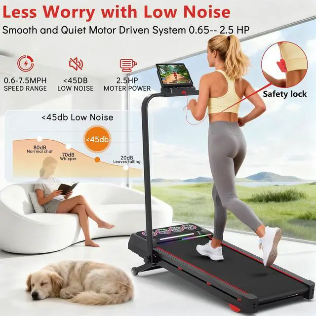 2.5HP Powerful Quiet Motor Auto Incline Treadmill: The treadmill has a powerful 0.65 - 2.5HP motor, ensuring high-performance operation. And offers walking, jogging, hiking, running modes with speeds from 0.6 to 7.5 mph. Offer smooth, powerful walks and runs. Operating very quietly, very suitable for home and office use. Come with an external fan for cooling the motor, supports 15000 hours of using life, can increase exercise time
