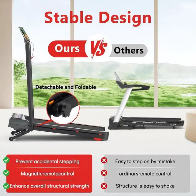 Safety & Convenient Control: The treadmill come with safety lock and romote control intuitive touch control panel. Magnetic safety locks stop instantly for emergency, and clear touch control panel can adjusts speed/incline /start and stop/no fumbling, no risk. Perfect for home workouts