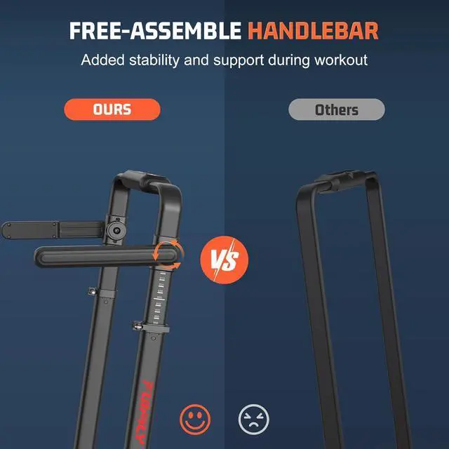 FOLDABLE TREADMILL WITH ADJUSTABLE HANDRAIL NEW innovative Funmily treadmill features adjustable handrails that provide personalized support during your workouts. Simply extend the handrails for added stability or fold them away to enjoy the freedom of arm movement while running. Its sleek, foldable design makes storage a breeze, making it perfect for home gyms, apartment, small spaces