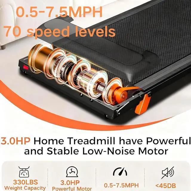 [Remote Control with 70 Speed Settings] Easily adjust speed from 0.5 to 7.5 MPH via a handy magnetic remote. With 70 precise speed levels, increase by 0.1 mph, this walking pad under desk foldable offers smooth transitions and convenient remote control.