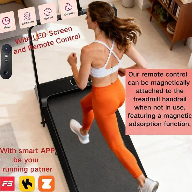 [App Connected for Smart Fitness Tracking] Sync with fitness apps to monitor real-time data like distance, duration, and heart rate. Set goals, track progress, and follow virtual routes for a more engaging workout on your walking pad treadmill with incline and handle.