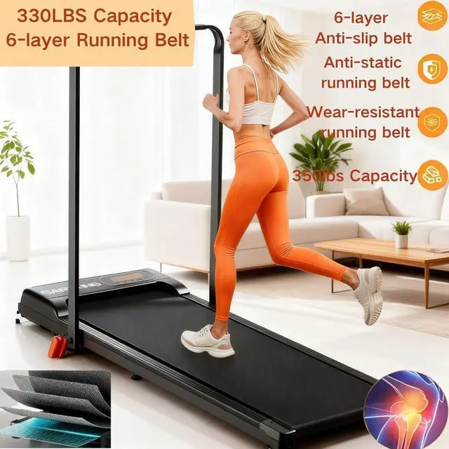 [High Weight Capacity & Stability] Supports users up to 330 lbs, making it a durable walking pad with handle bar 330 lbs capacity. Sturdy handrails provide extra stability, ensuring a secure workout experience for all fitness levels.
