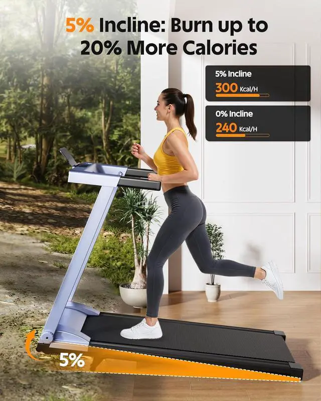 Treadmill with Incline 5% manual incline helps increase workout intensity for walking pad treadmill routines and indoor cardio