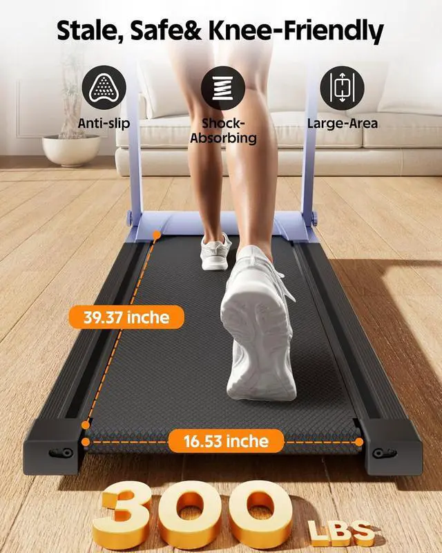 300 lb Capacity, Stable Deck Supportive frame and anti-slip belt help provide a safer, steadier feel for daily workouts