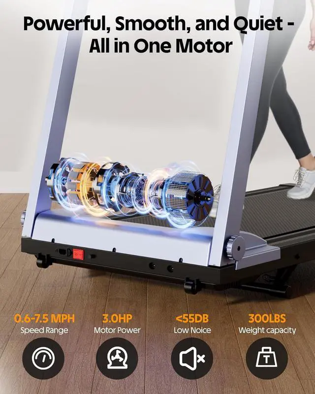 3.0 HP Motor Performance Strong motor supports stable speed from 0.67. 5 MPH for walking, jogging, and running with reduced vibration